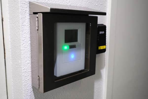 入退室管理は、セコムのセキュリティを採用しております。契約時にお渡したICカードをかざすと入退室できます。