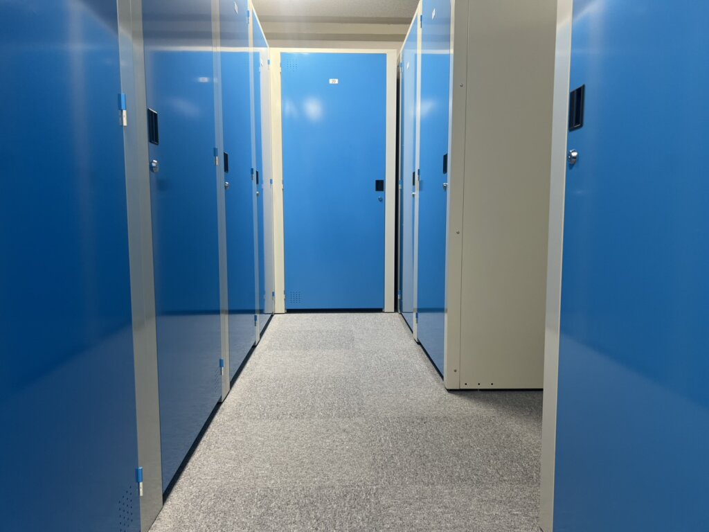 屋外コンテナのような「夜は暗くて怖い」イメージを一新。入退室管理システムを導入し、契約者のみ入室可能です。人感センサー照明で室内は明るく、女性お一人でも安心してご利用いただけます。