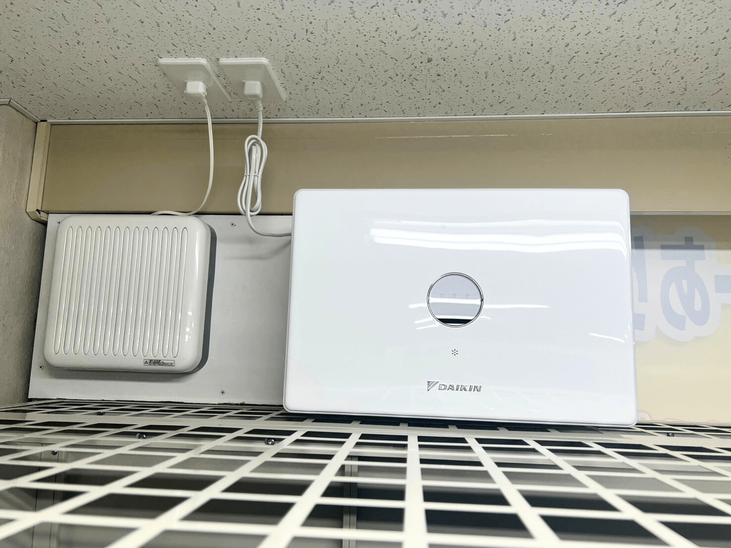除湿機と扇風機を店舗内で稼働させています。湿度をコントロールすることでカビの発生リスクを大幅に軽減。お客様の大切な荷物を守ります。