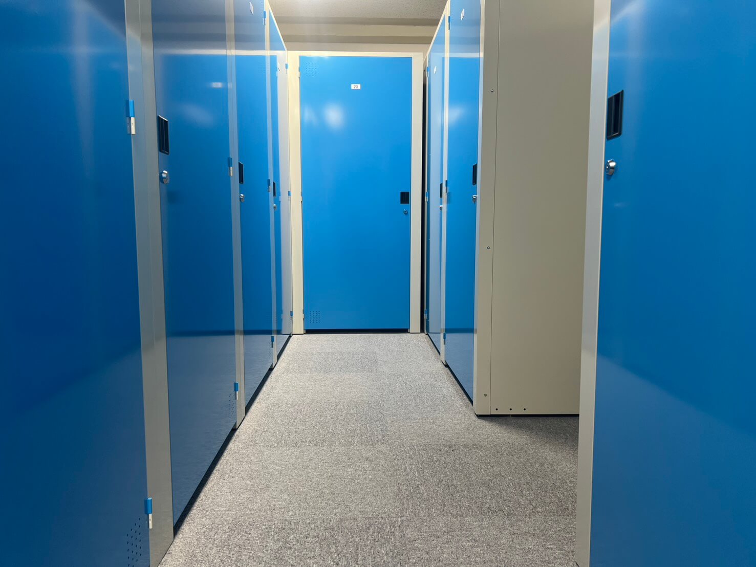 屋外コンテナのような「夜は暗くて怖い」イメージを一新。入退室管理システムを導入し、契約者のみ入室可能です。人感センサー照明で室内は明るく、女性お一人でも安心してご利用いただけます。