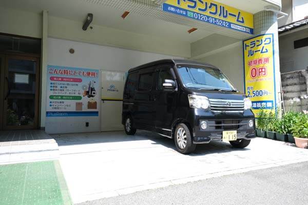 東雲本町店では、店舗の目の前に1台分の駐車スペースがございます。建物の中になりますので、雨に濡れずに荷物の搬入ができます。