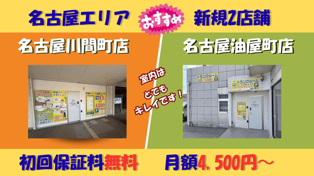 名古屋市のトランクルームは「自宅から一番近いトランクルーム」を目指し、各行政区に出店中です。きっとご自宅の近くにプラスルームのトランクルームはございます。下記店舗一覧にてお探しください。