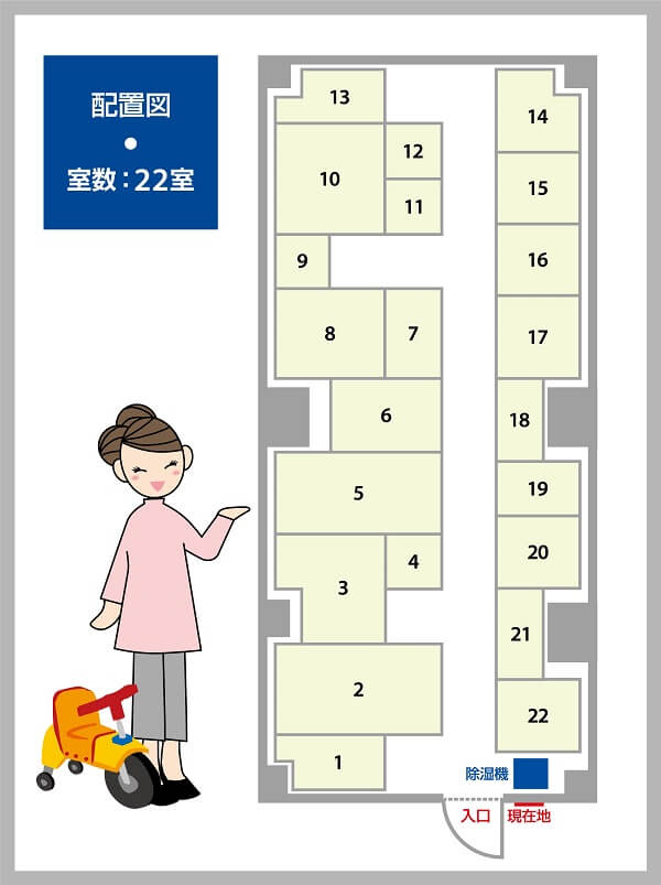 横浜市瀬谷区にある数少ない室内型トランクルームです。室内は明るい為、暗い夜女性でも安心して荷物の搬入の出来るのが特徴です。